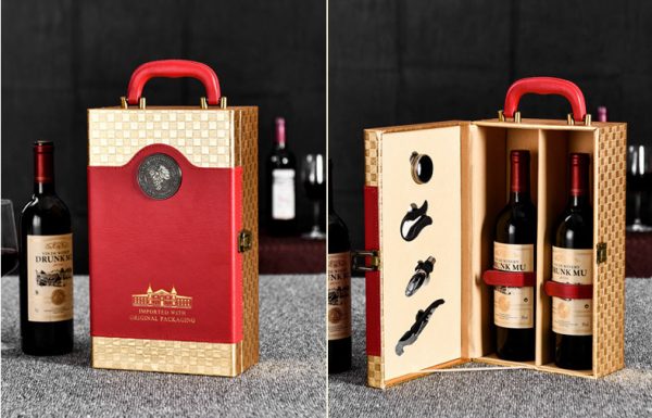 – Hộp đựng rượu vang cao cấp được sản xuất với hiết kế tay cầm kim loại chắc chắn