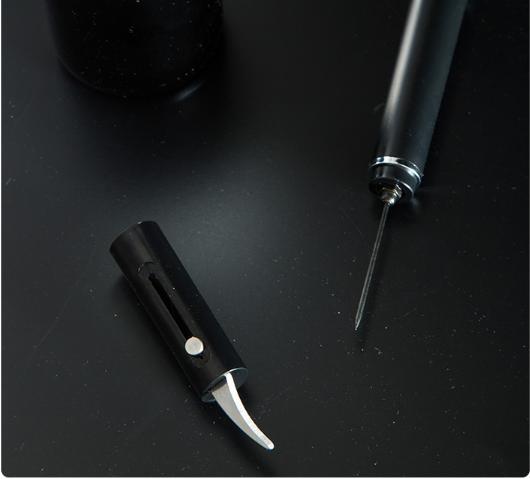 Sản phẩm thiết kế có nắp đậy đảm bảo an toàn cho người sử dụng. Tích hợp với dụng cụ cắt cổ chai ngay ở đầu nắp vô cùng tiện lợi.